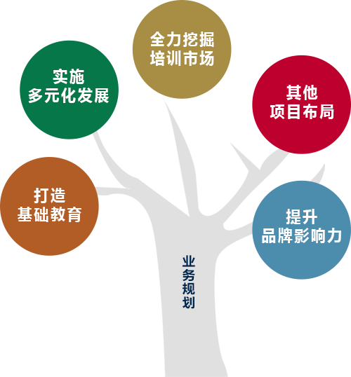 2. 實(shí)施多元化發(fā)展。在投資新建職業(yè)學(xué)院的基礎(chǔ)上,對(duì)職業(yè)教育、職業(yè)技能培訓(xùn)、職業(yè)教育研究、中外合作辦學(xué)等領(lǐng)域開展相關(guān)多元化投資,投資收購(gòu)K-12(中小學(xué)以及幼兒教育)培訓(xùn)機(jī)構(gòu),利用集團(tuán)優(yōu)勢(shì)占領(lǐng)市場(chǎng),塑造品牌,實(shí)現(xiàn)優(yōu)質(zhì)教育資源上市;通過(guò)品牌合作、資源共享等多種方式,并購(gòu)或投資控股其他優(yōu)質(zhì)職業(yè)教育機(jī)構(gòu)和培訓(xùn)機(jī)構(gòu)。
