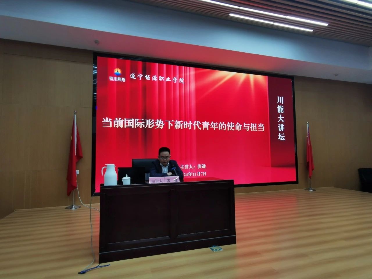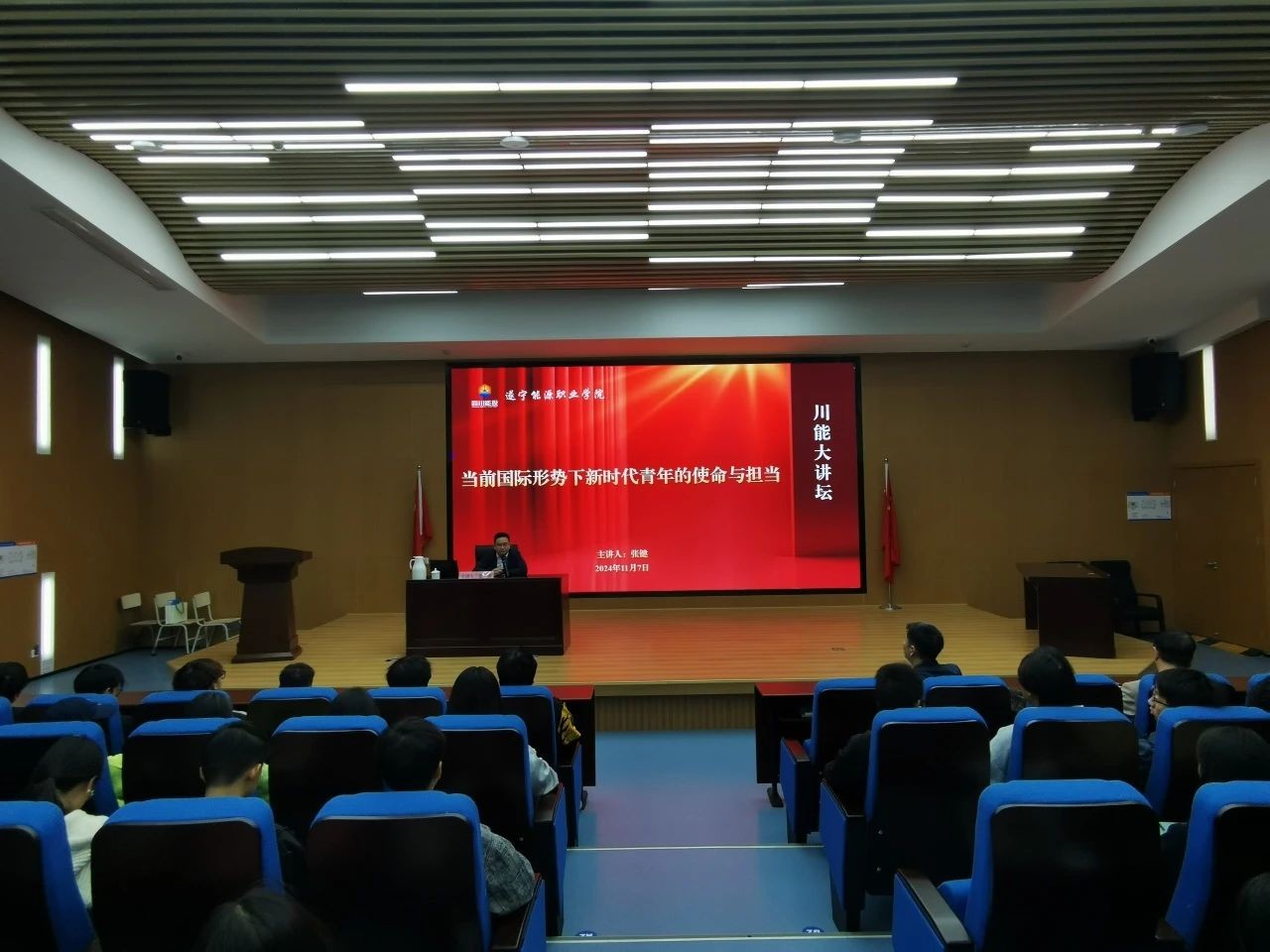11月7日晚,遂寧能源職業(yè)學(xué)院“川能大講壇”特邀請遂寧市人民政府副秘書長、遂寧市商務(wù)局黨組成員、副局長,外交部中國國際問題研究院助理研究員張鍵為全校師生講授《當(dāng)前國際形勢下新時(shí)代青年的使命與擔(dān)當(dāng)》主題報(bào)告,旨在向大家全面介紹當(dāng)前國際局勢的變化以及中國在其中的角色與責(zé)任,同時(shí)探討新時(shí)代下中國青年的發(fā)展機(jī)遇與挑戰(zhàn)。遂寧能源職業(yè)學(xué)院副院長何軍主持報(bào)告會。