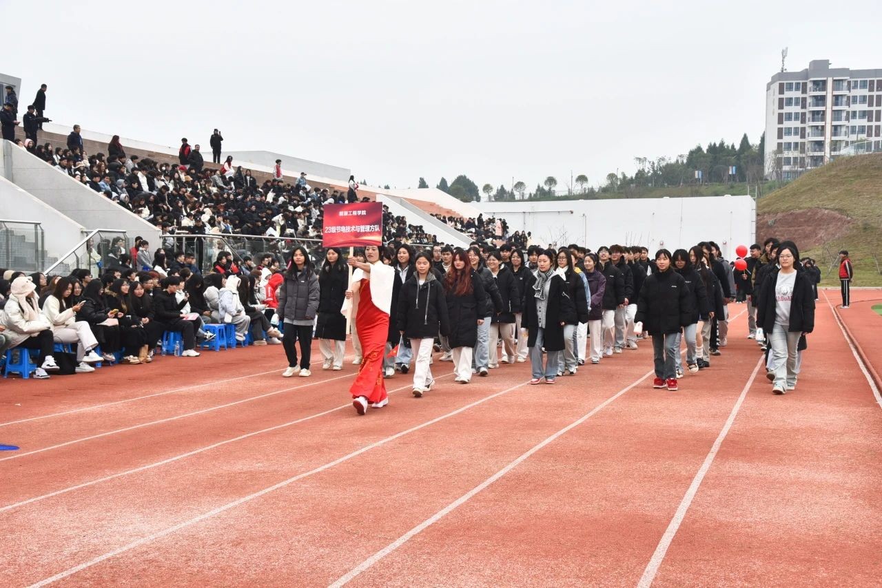 當(dāng)天上午9時(shí)許,旌旗飄揚(yáng),樂聲鏗鏘,鮮艷的五星紅旗引領(lǐng)著會(huì)旗、彩旗方陣依次走過主席臺(tái),展示著遂寧能源職業(yè)學(xué)院的運(yùn)動(dòng)精神。各學(xué)生代表方陣、教師代表方陣朝氣蓬勃、意氣風(fēng)發(fā),以整齊矯健的步伐、振奮人心的口號(hào),彰顯著青春的律動(dòng)與風(fēng)采,贏得了全場(chǎng)經(jīng)久不息的掌聲和歡呼。