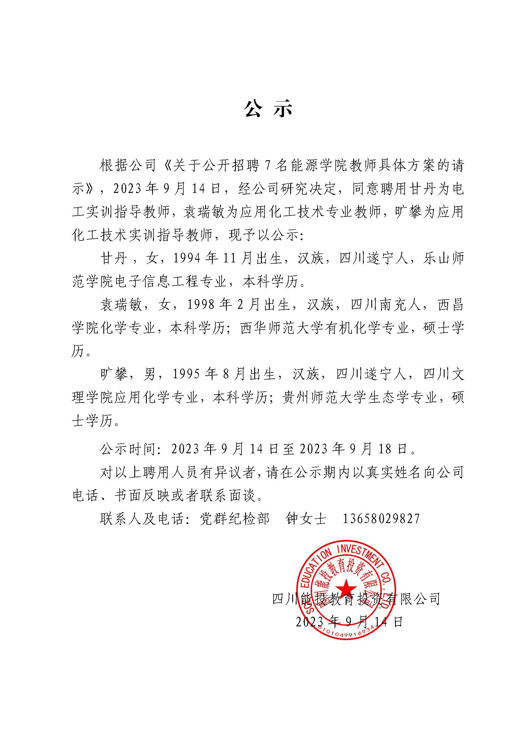 關于公開招聘錄用馮倬等11名人員名單的公示